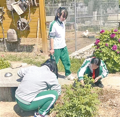 學(xué)生們在北京市付家臺中心小學(xué)百年古渠教育園內(nèi)勞動。