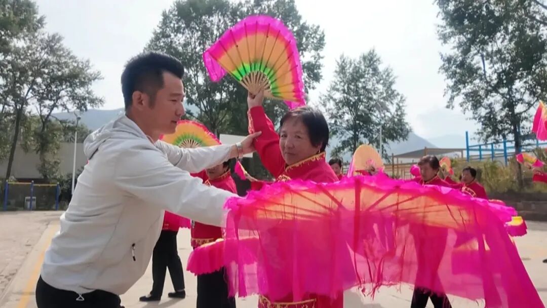 走進(jìn)青海省西寧市湟源縣日月藏族鄉(xiāng),在兔兒干村廣場上,見到了市級文化特派員趙佳新,他手持折扇,正耐心地糾正著群眾的舞蹈動作,一邊指導(dǎo)一邊叮囑:“扇子打開,正視前方,站好,面帶微笑,好不好,面帶微笑,對,扇子這樣可以抖起來,樂隊老師們準(zhǔn)備,五六七走。后面用洪湖水浪打浪的音樂?!壁w佳新大膽創(chuàng)新,采用“經(jīng)典曲目+本土元素”的模式,巧妙地將《洪湖水浪打浪》悠揚的旋律與藏族舞蹈剛健有力的步伐完美融合。