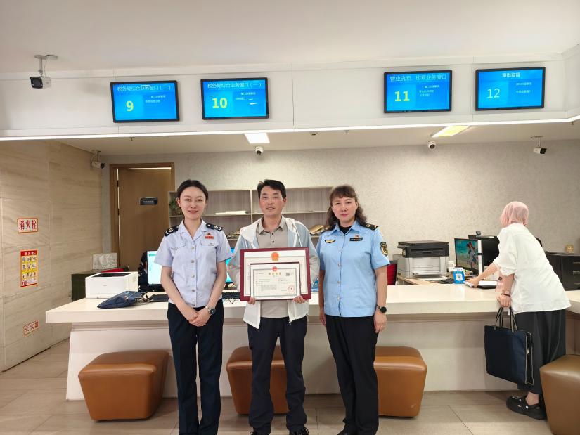 圖為納稅人“個轉(zhuǎn)企”當日拿到營業(yè)執(zhí)照 蘆明慧攝