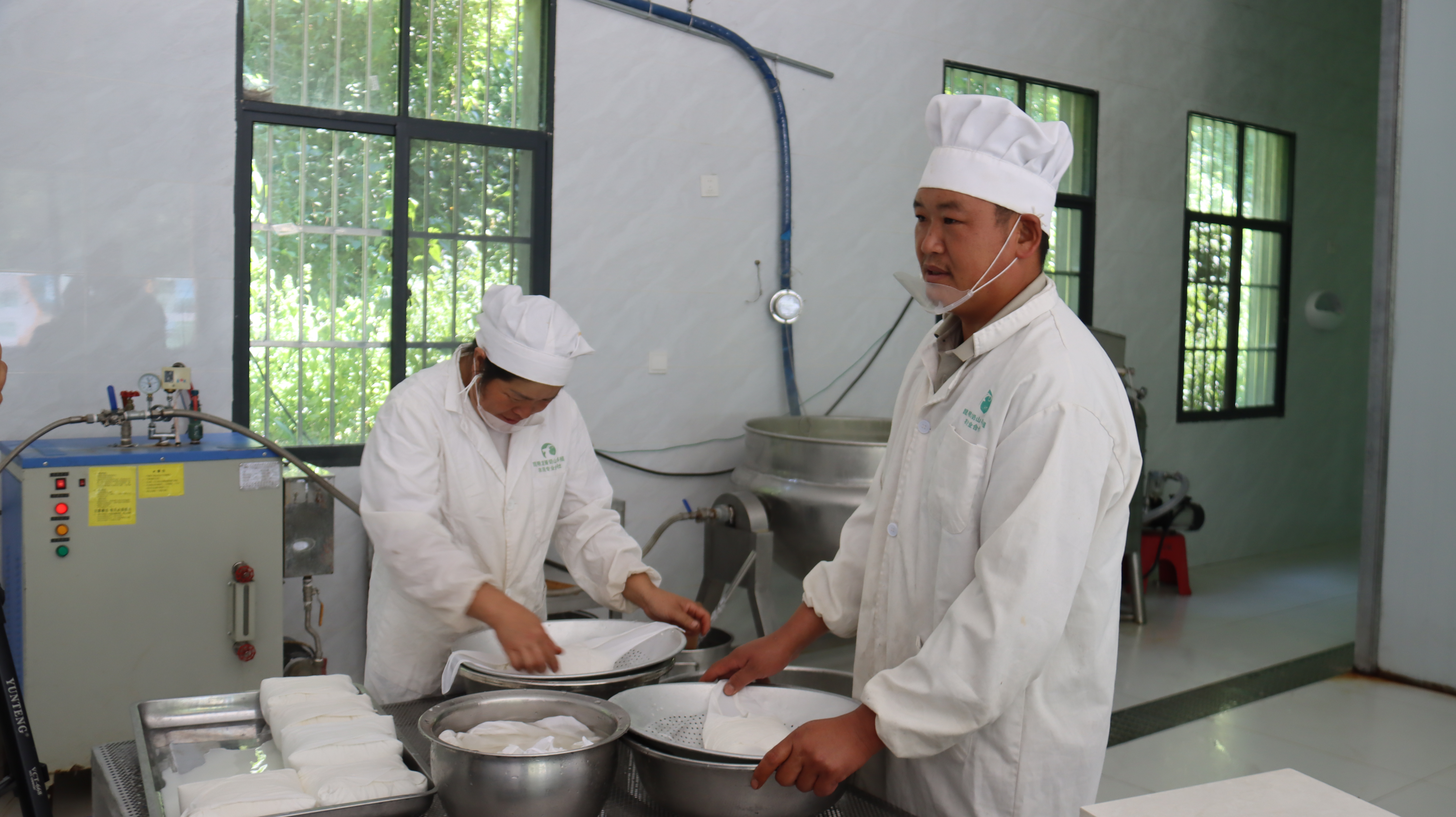 2023年,合作社迎來發(fā)展關(guān)鍵期。這一年,合作社爭取到鄉(xiāng)村振興銜接項(xiàng)目資金100萬元,又自籌40萬元,建成1300余平方米加工廠,購進(jìn)設(shè)施設(shè)備,乳餅生產(chǎn)標(biāo)準(zhǔn)車間順利投產(chǎn)。