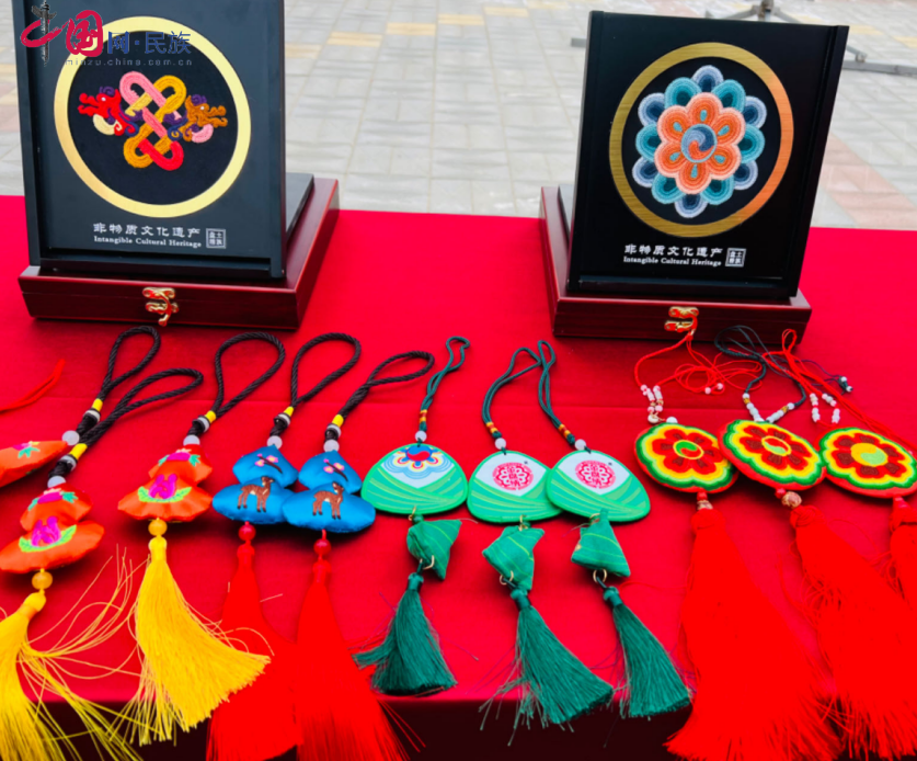 演出廣場外,還設置了非遺特產(chǎn)展覽區(qū),展覽刺繡、工藝品等非遺特色產(chǎn)品。