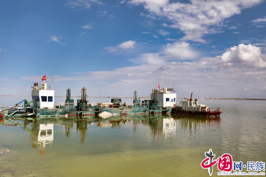 察爾汗鹽湖的采鹽船。蔡得軍攝