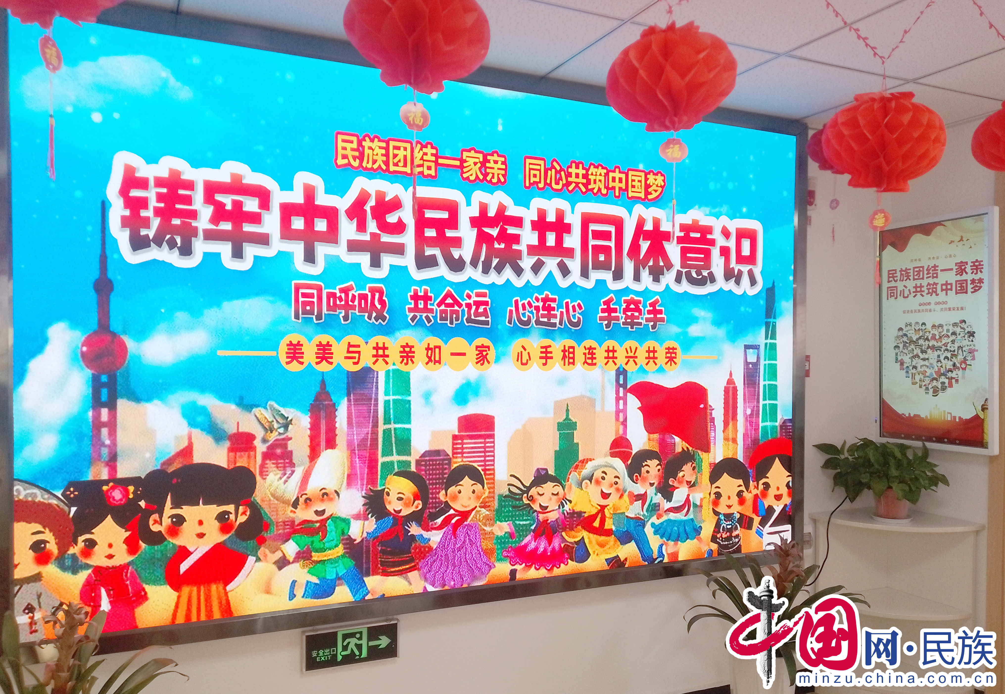 走進(jìn)建安社區(qū)黨群服務(wù)中心,首先映入眼簾的是一面巨大的電子屏,屏幕上身著各民族服飾的卡通形象很是引人注意。色彩斑斕的畫面,生動形象地呈現(xiàn)出中華民族多元一體的文化魅力。兩側(cè)的文化墻上,一幅幅色彩鮮艷的圖畫,生動形象地展現(xiàn)了不同民族的風(fēng)情與特色,闡述了各民族之間相互依存、共同發(fā)展的緊密關(guān)系,無不彰顯著民族團(tuán)結(jié)帶來的巨大力量。