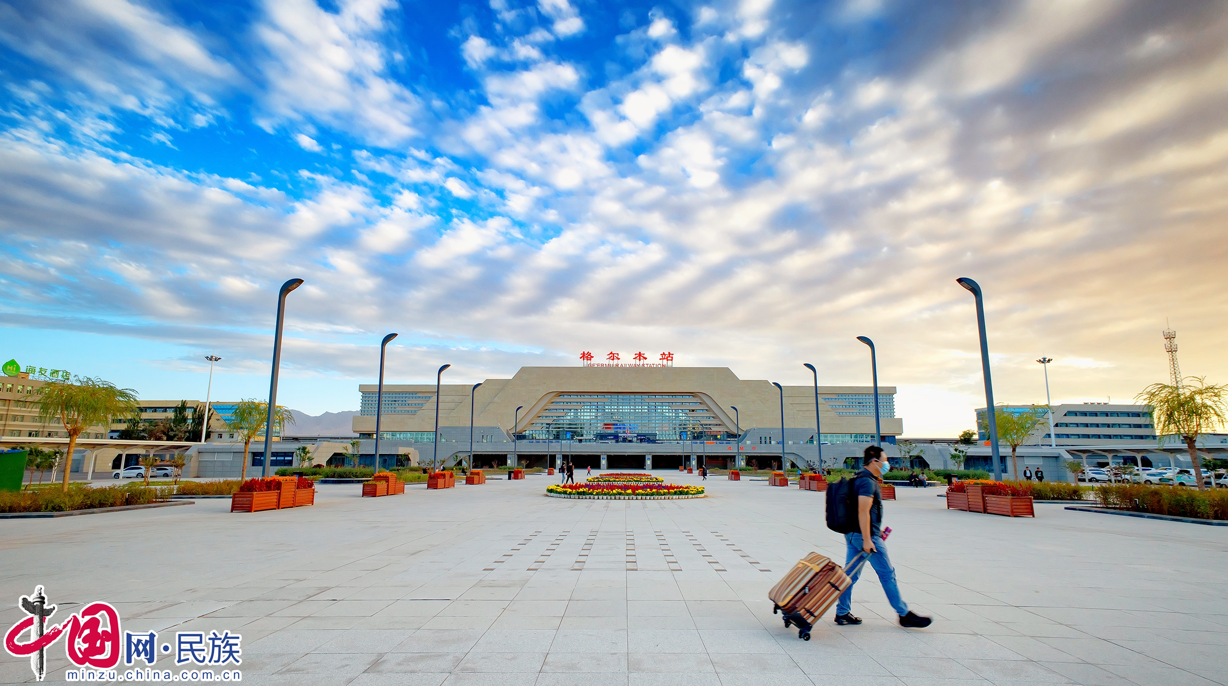 游客從格爾木市火車站前廣場走過。格爾木市委宣傳部供圖