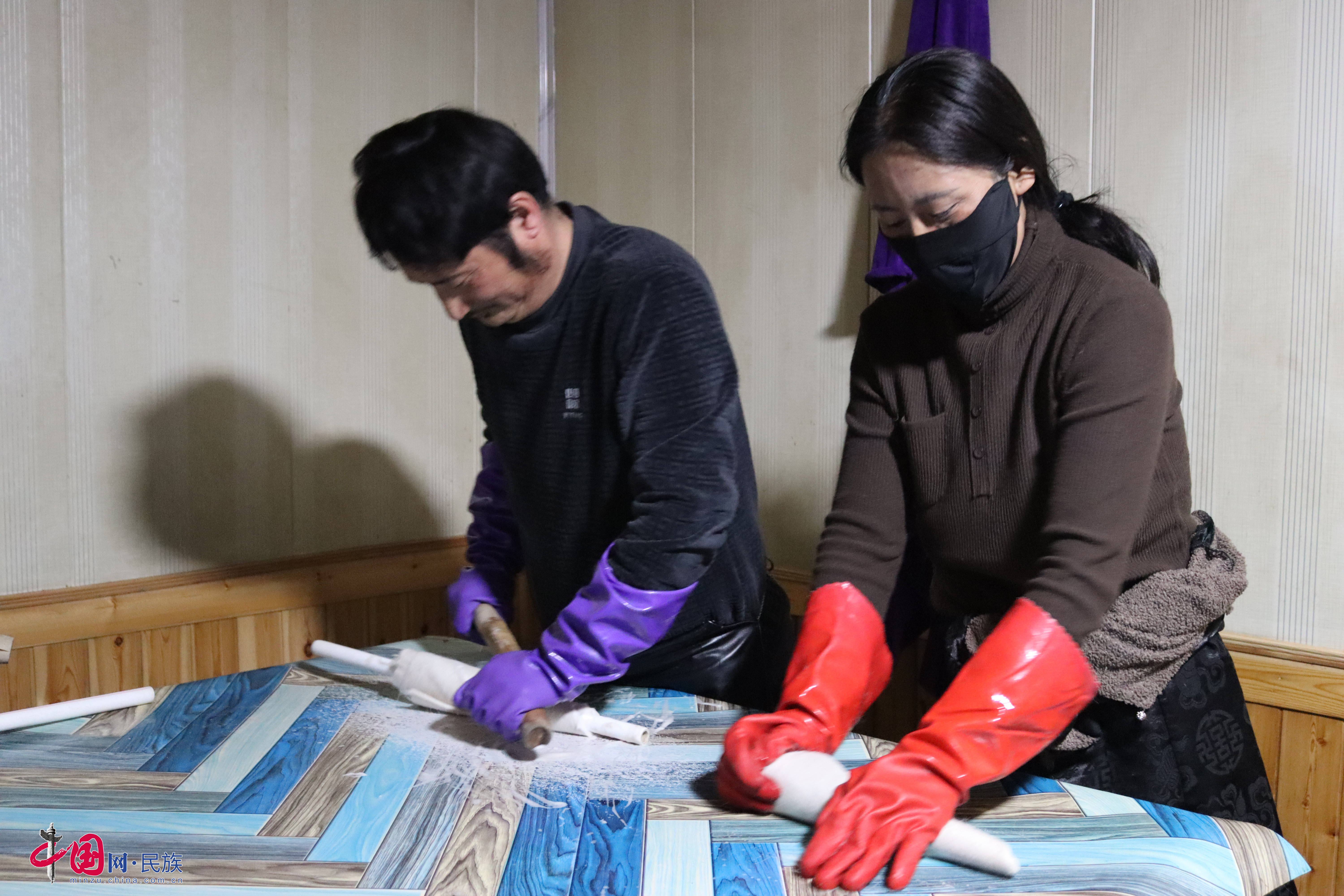 在制作過程中,端巴杰的雙手需要不斷拍打、梳洗羊毛,長年累月下來,這雙手已經(jīng)變得愈發(fā)粗糙,但正是這份粗糙,見證了他對氈帽制作技藝的執(zhí)著與熱愛。