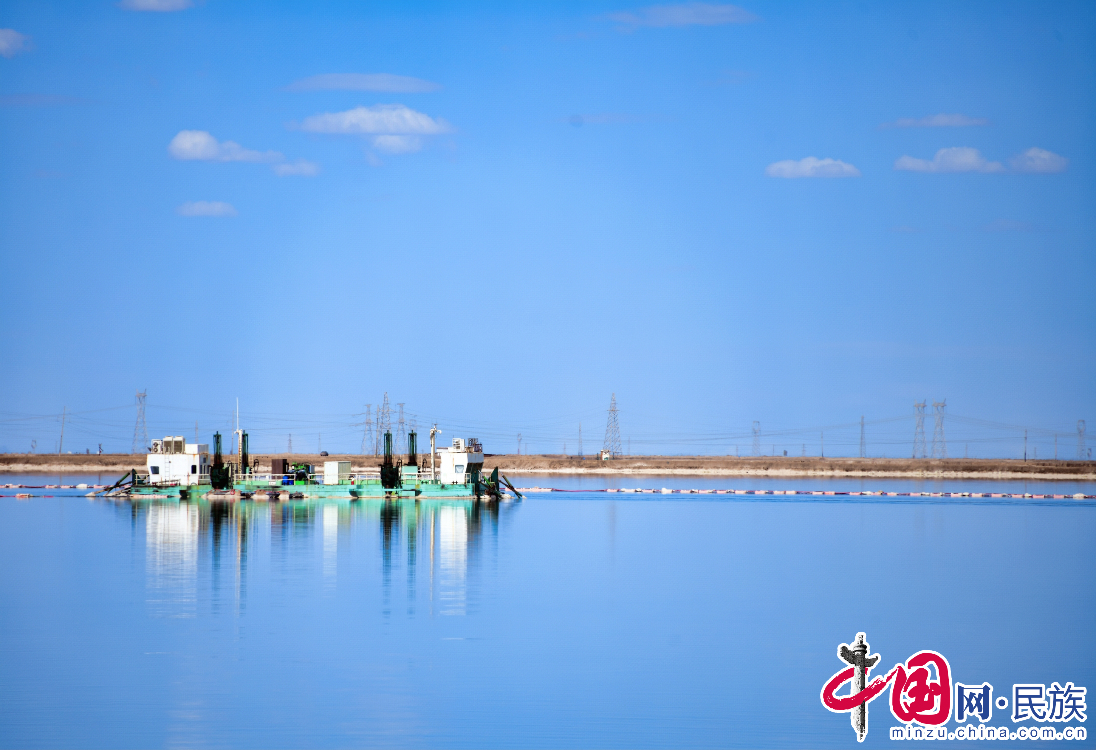 察爾汗鹽湖上的采鹽船。蔡得軍攝