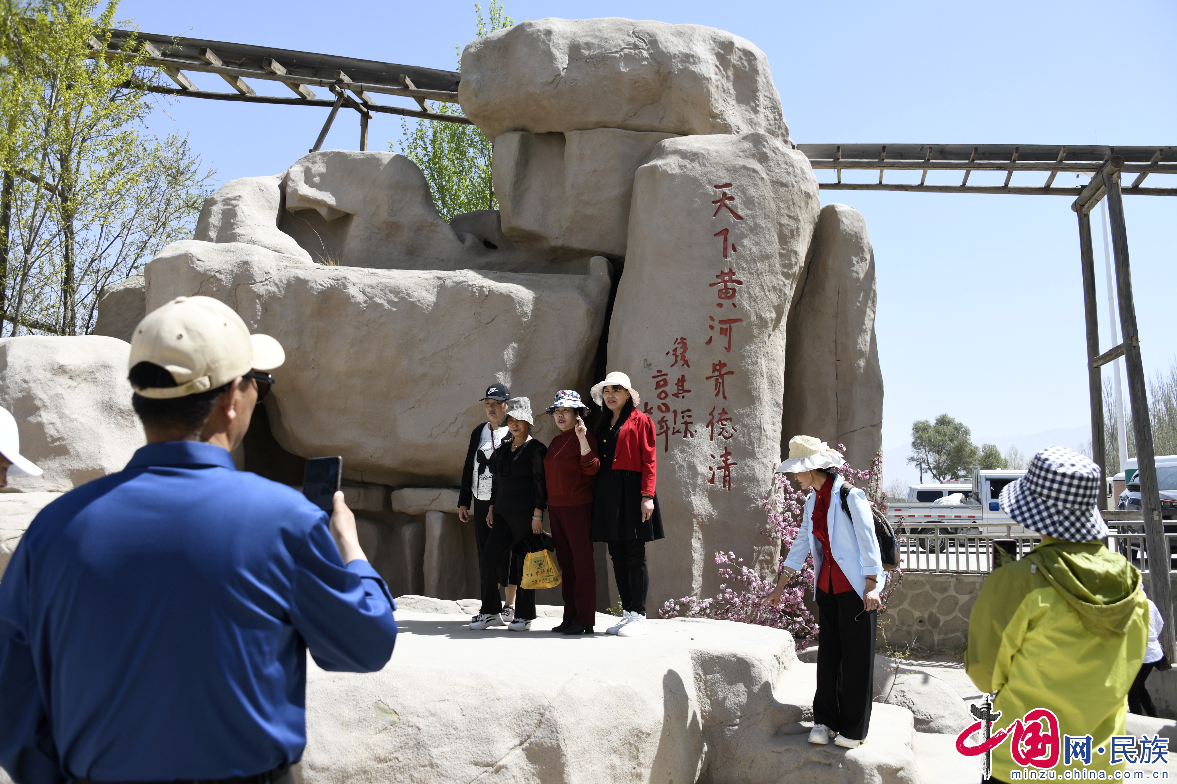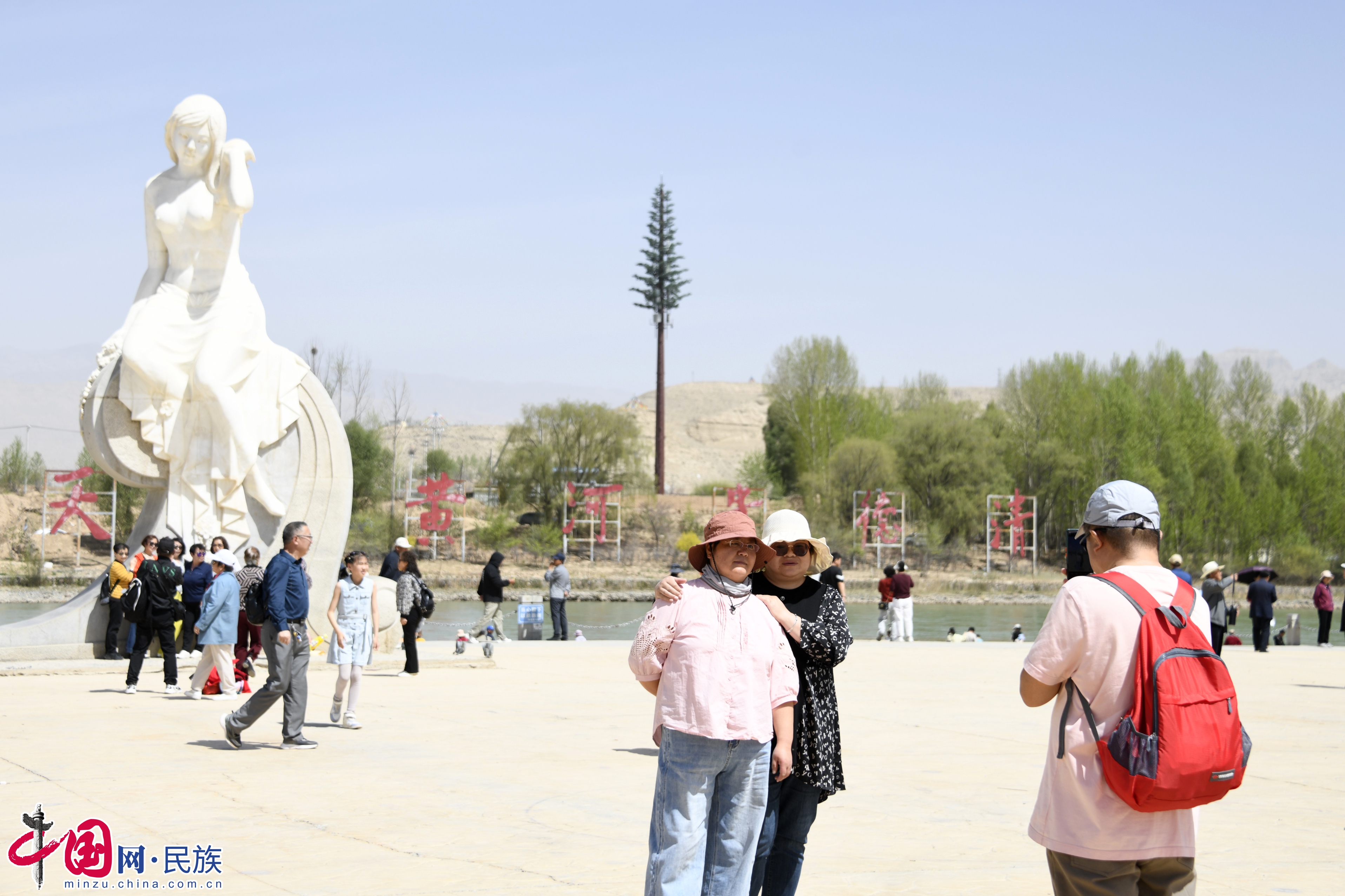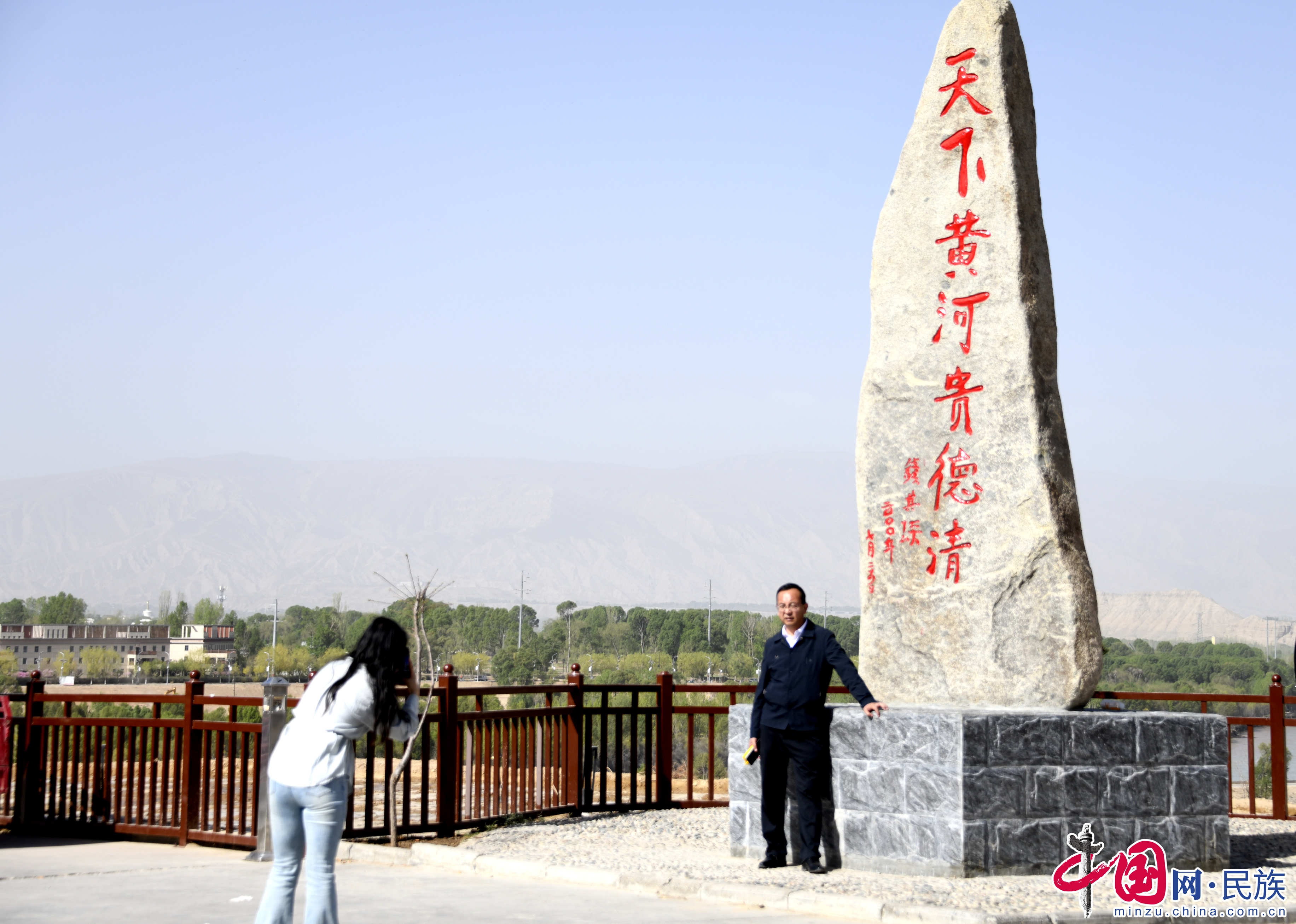 游客在貴德縣清清黃河景區(qū)拍照留念。蔡得軍攝