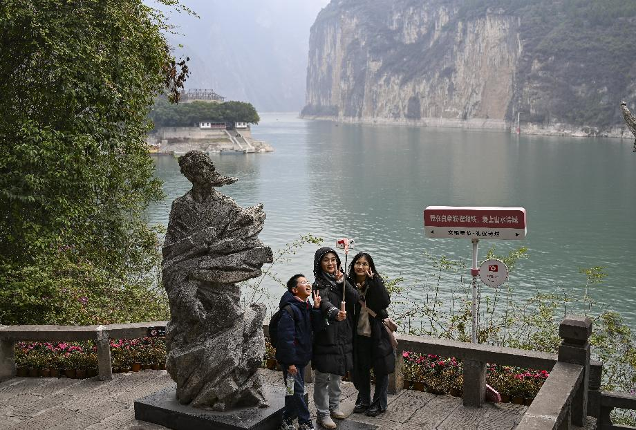 游客在重慶奉節(jié)白帝城游覽拍照(2025年2月13日攝)。新華社記者王全超攝