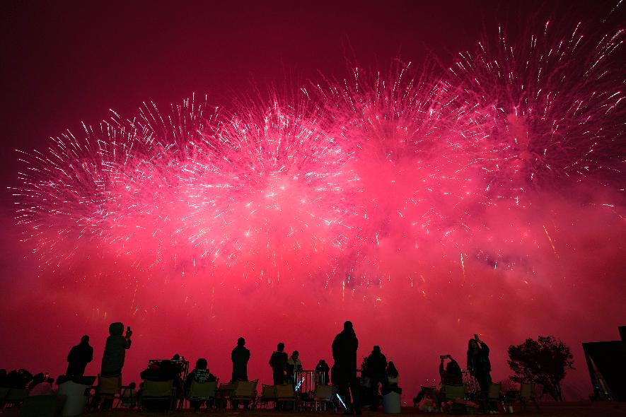2025年2月15日,觀眾在湖南省瀏陽市天空劇院觀賞“春焰啟幕星耀瀏陽”周末焰火秀。新華社記者薛宇舸攝