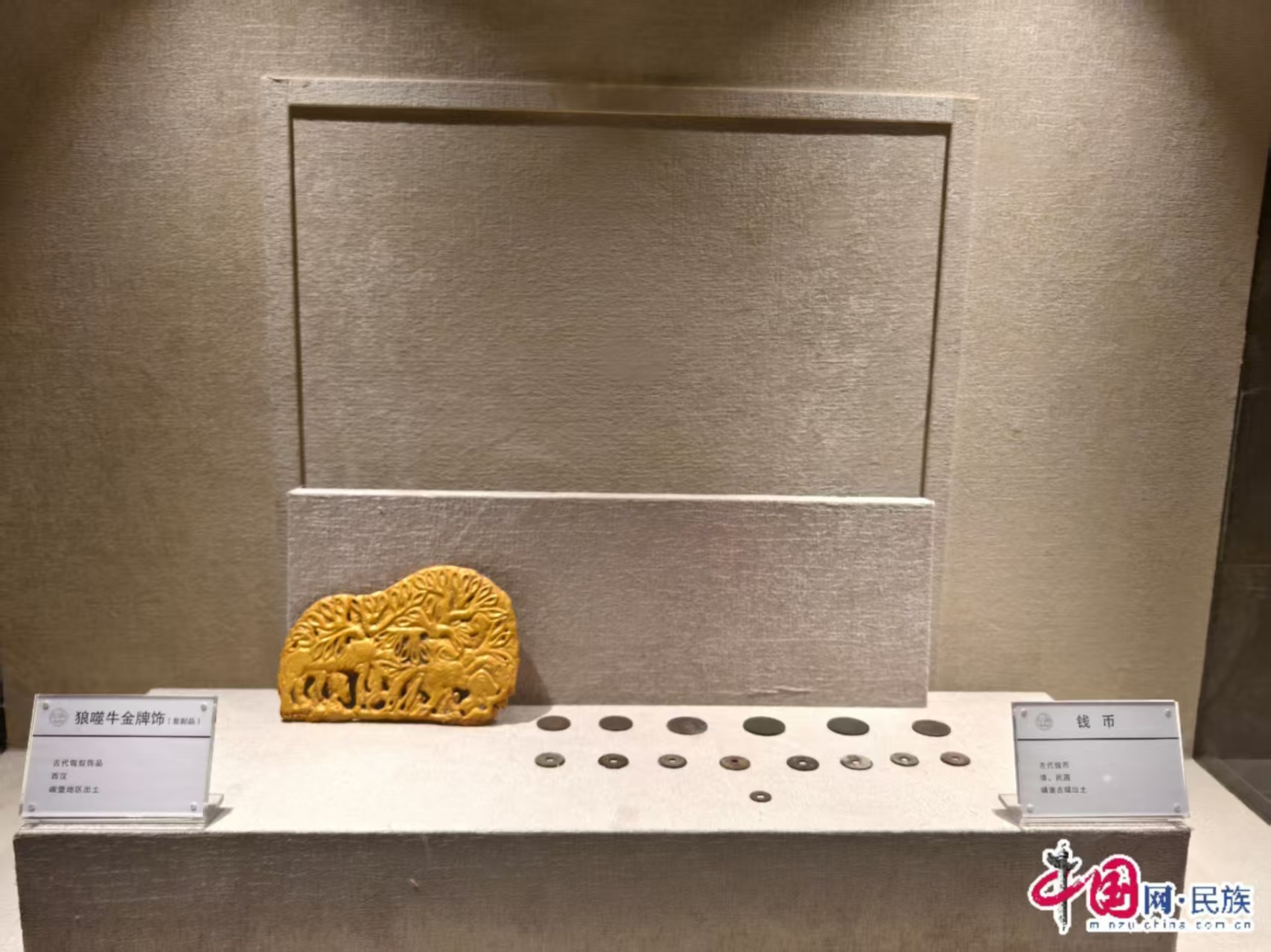 博物館中,狼噬牛金飾牌格外引人注目,20厘米見方的純金飾件上,狼與牛搏斗的紋路清晰逼真,仿佛將那段遙遠(yuǎn)歲月里匈奴貴族的威嚴(yán)與勇猛直接帶到觀眾眼前。這件珍貴的文物,是峨堡作為軍事要塞和絲路商貿(mào)重地的有力見證,訴說(shuō)著當(dāng)時(shí)此地的繁榮與重要。