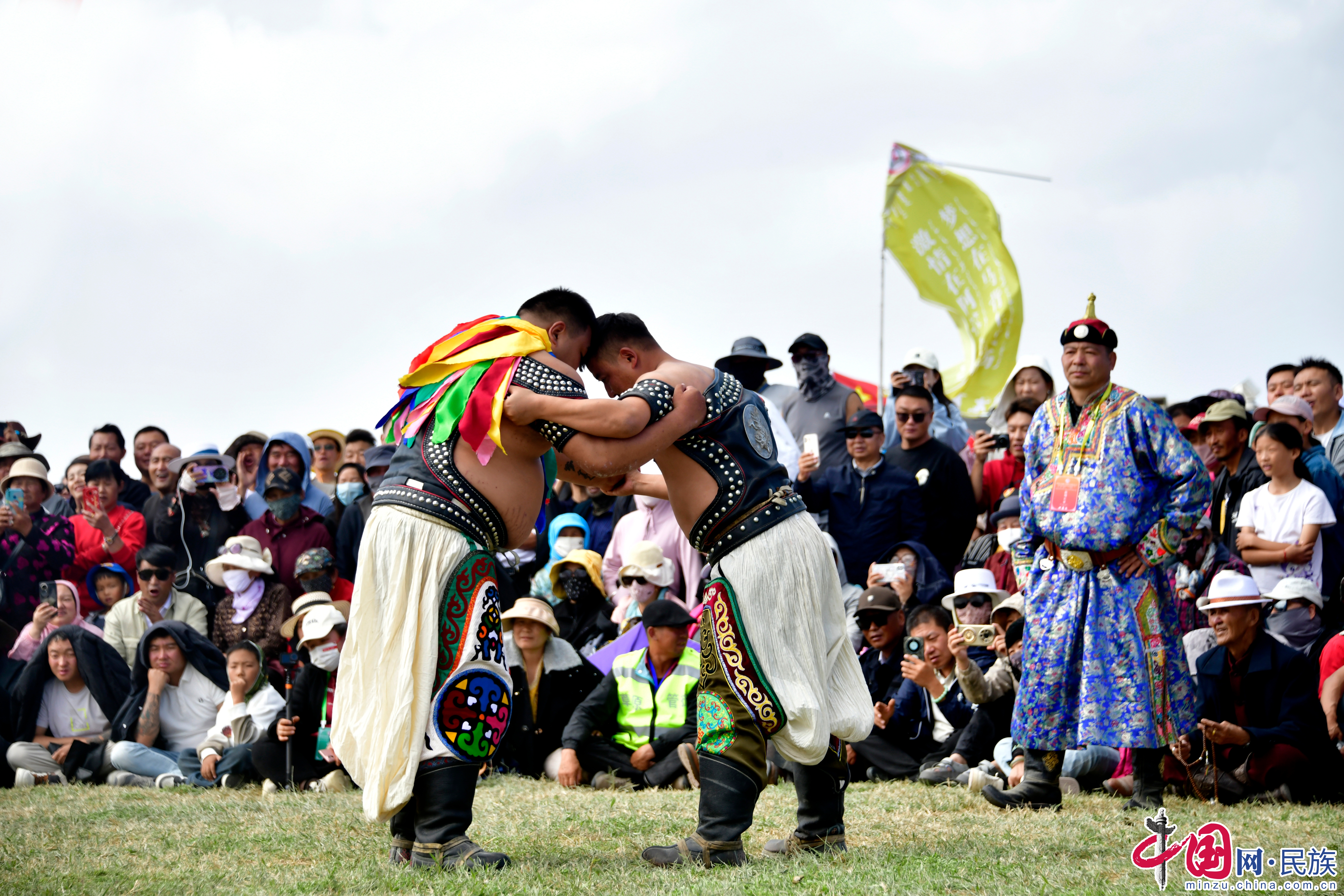 ——搏克(摔跤)比賽中,選手們奮力拼搏,充分展示著力量與技巧的魅力;
