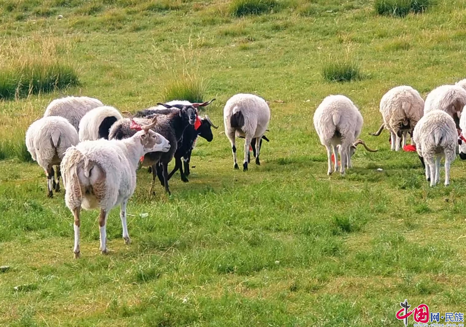 秋季的哈爾蓋草原,宛如一塊巨大的黃色絨毯。成群的藏羊和牦牛悠然自得地覓食,構(gòu)成了一幅和諧的草原牧歌圖。